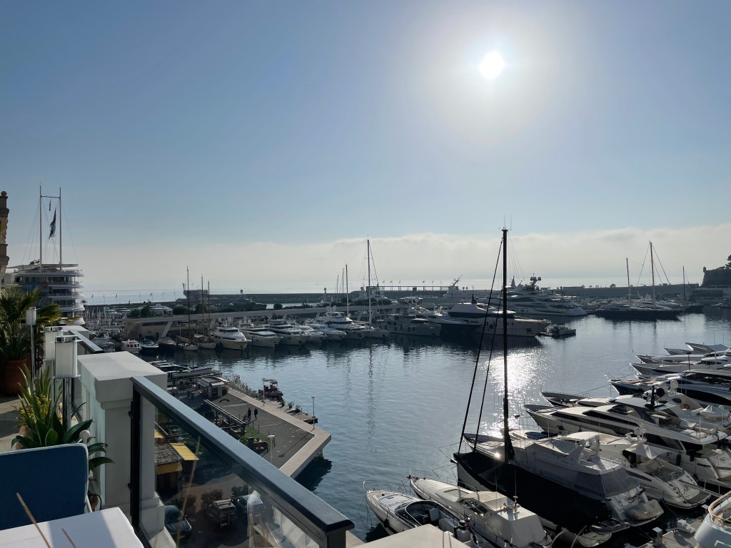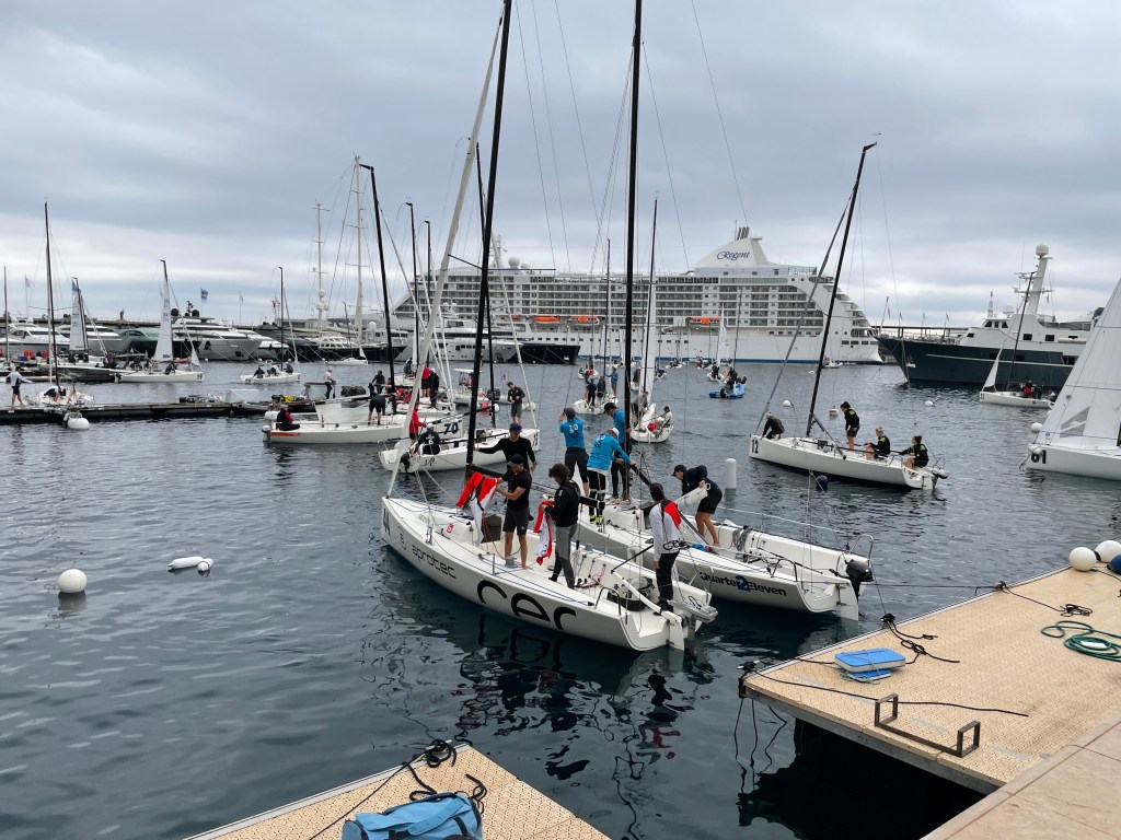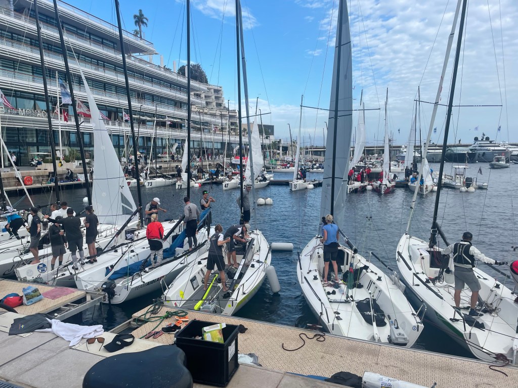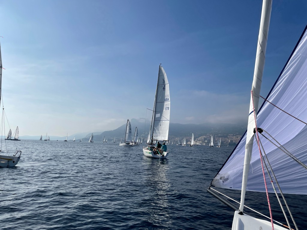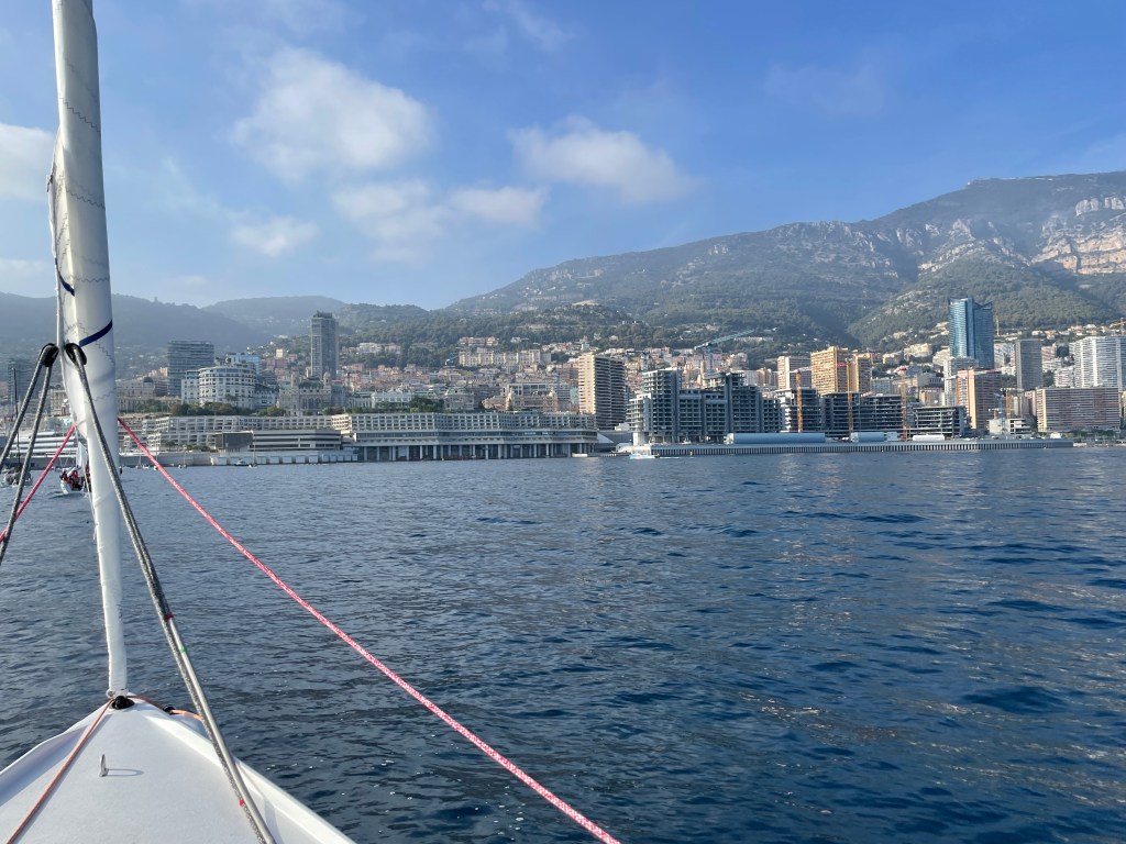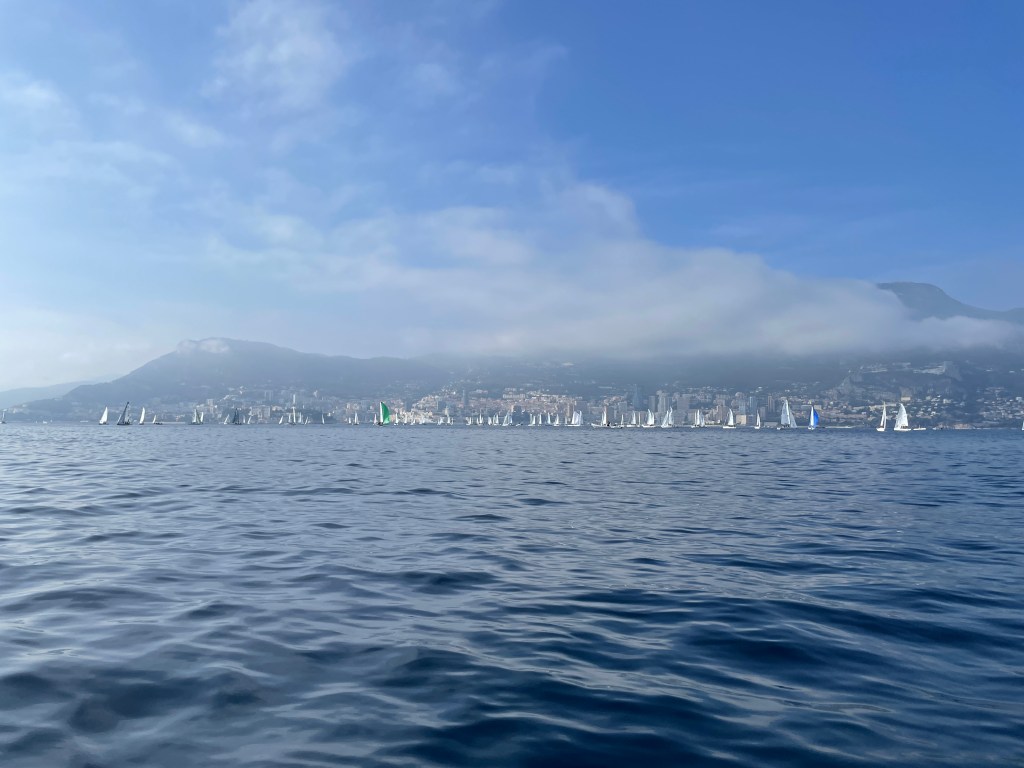 Here’s a beautiful shot of the fleet out racing, with Monaco in the foreground…