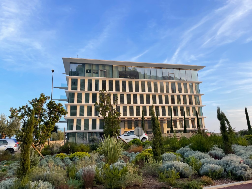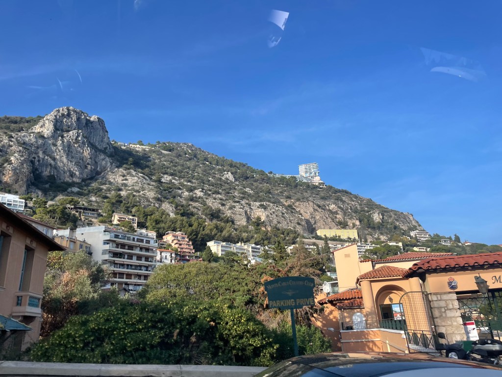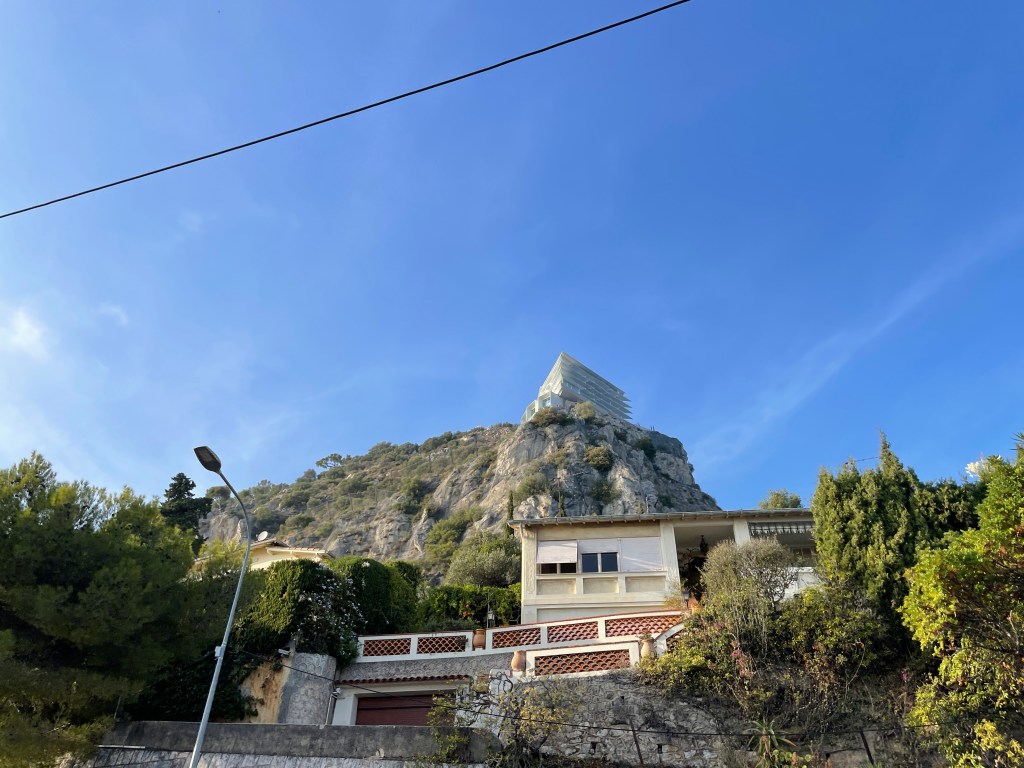 view of the hillside leaving Monaco and entering Cap Martin what is that hideous building on the skyline?