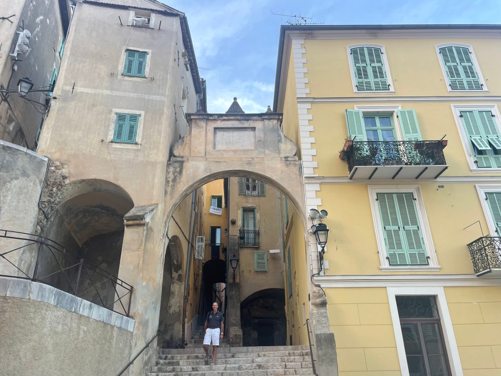 We drove back past Menton Old Town – no cars allowed – and I stopped and (after a bit of puzzlement – where is an entrance?) walked in. So cool!