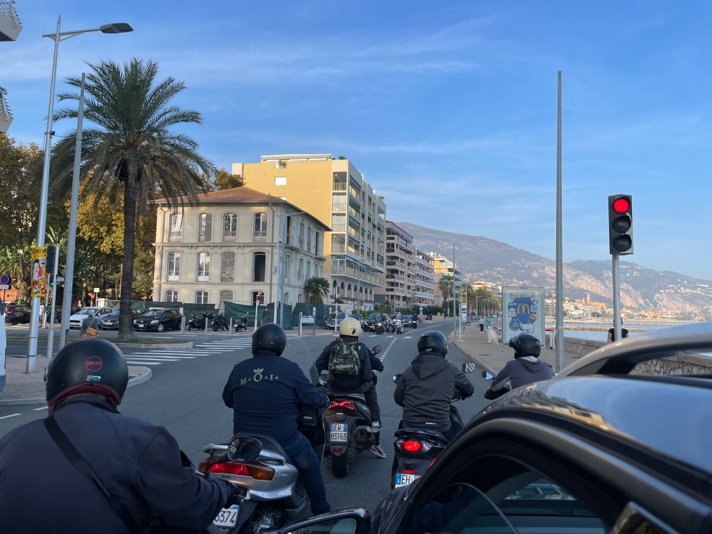 Okay, so no racing, boo, and onward to Italy, yay. All the Italians here said “don’t waste your time with Ventemigila (first city on Italian side of border), continue on to Sanremo”. So … I taxied to Sanremo.