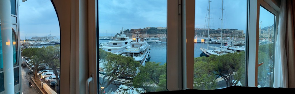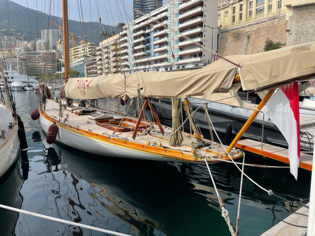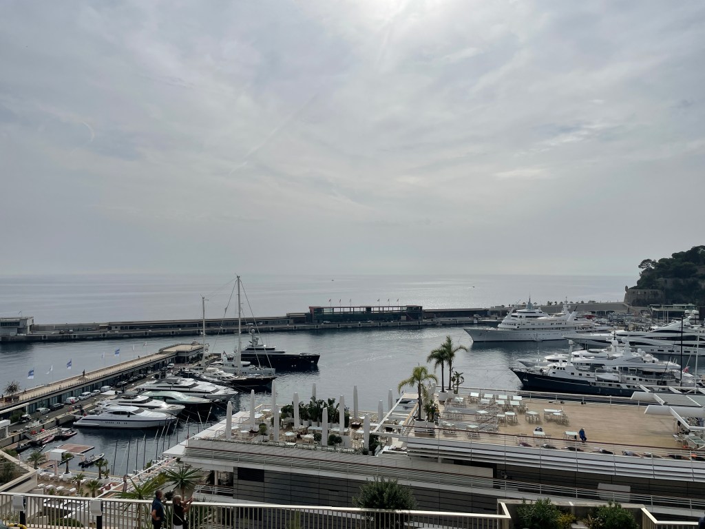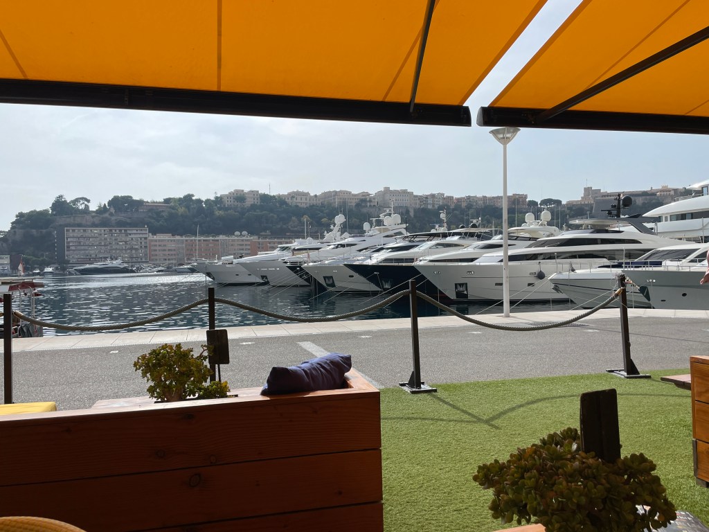 yeah, did get a chance to re-visit the shopping area up on Monte Carlo 🙂oogling the superyachts of the .01%-ersthis one is a mere 300′ long – wowthis is more to my liking – the Royal Flagship of the Yacht Club (from 1909)and the fleet sits idle, waiting for a chance to race…
