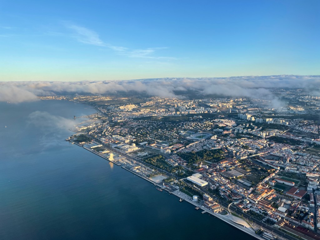 Lisbon! – but only from the air, and for a brief stoppover … I must be back